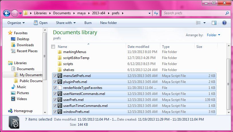 3. Go to the Maya prefs folder.