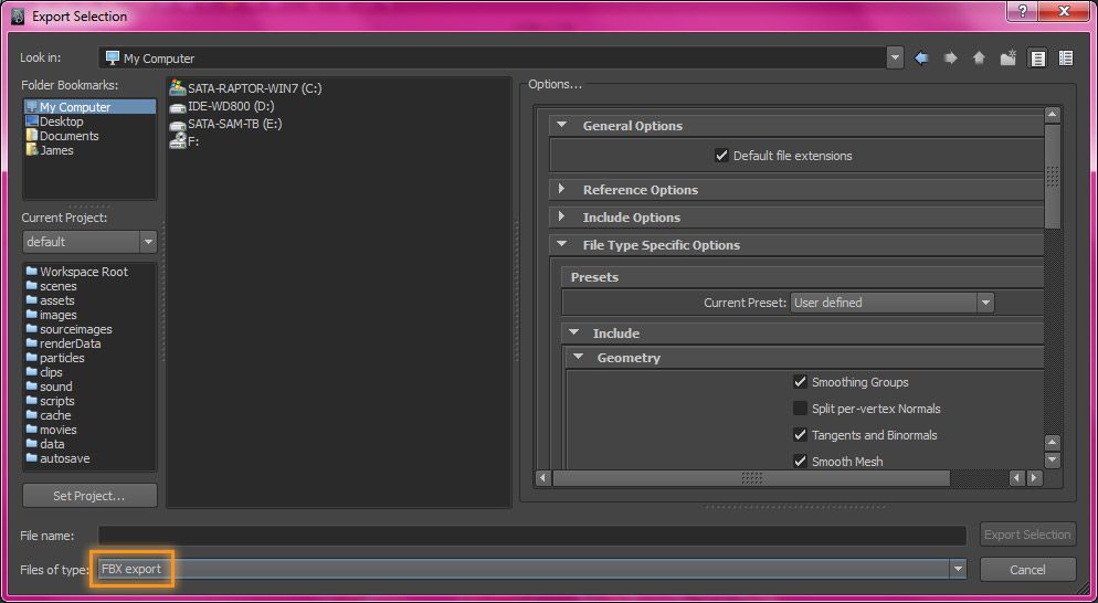 Again, we’re trying to make Maya forget whatever issue it has with our object. The FBX format carries a lot of data, but hopefully whatever glitch is stopping Maya isn’t transferred.