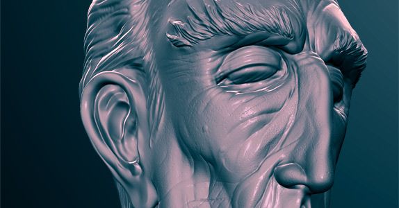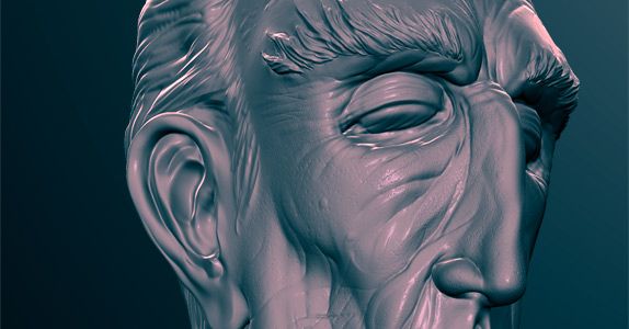 I start with a screengrab from Mudbox. I don’t remember my shader or lighting settings, but I’m almost certain that I used default lighting and a shiny grey shader for a bit of specularity.